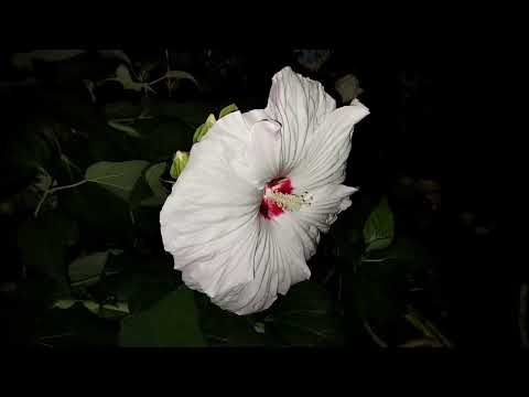 Kvetoucí ibišek bahenní (Hibiscus moscheutos) dnes v noci na zahrádce: Václav Kovalčík, září 2025, Zlín